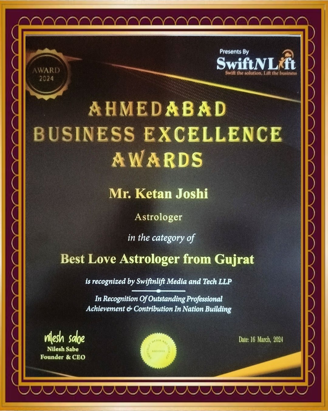 Special Thanks to astrologer ketan joshi..... He is a great person in world. His miracle is word less. Because he solve my problem. I never forget... Thank you